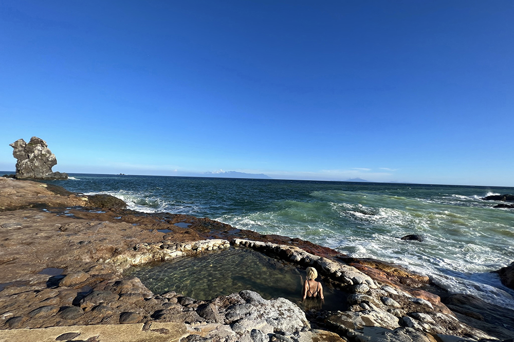 島内の海にせり出した露天温泉や野湯を満喫。